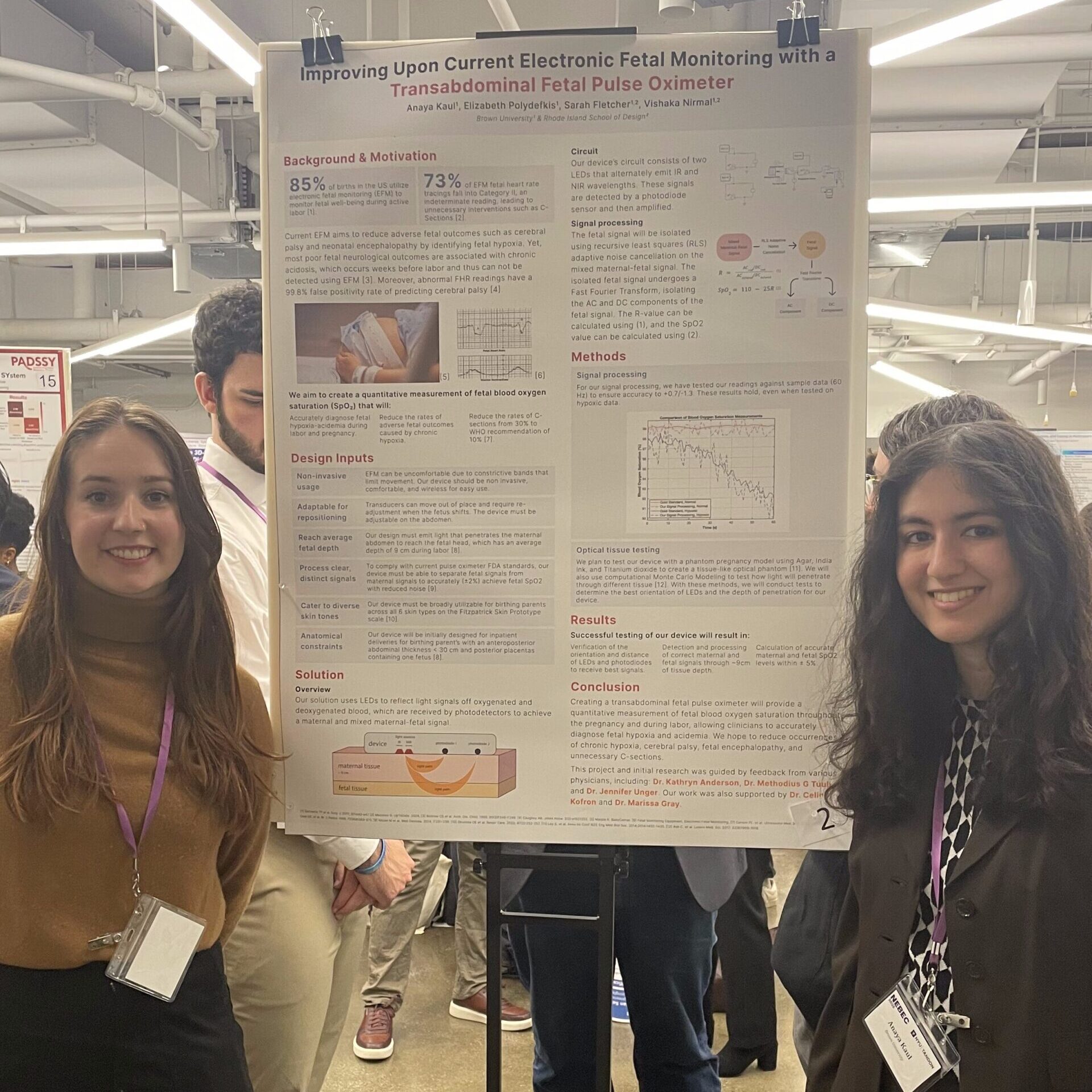 Throughout this project, I led the team’s circuitry design and performed a significant amount of the research into pulse oximetry technology to investigate how we could mirror current systems in our innovative device. I optimized our device throughout the prototyping process and put previously learned skills from the classroom in circuits and optics into actual practice to create our functioning device. I created a plan for how our device would be integrated in the medical system by doing research into current reimbursement structures and concluded that our device would work in tandem with current EFM to be easily integrated into current birth packages paid by insurers. I consulted with shareholders, from professors, to OB/GYNs, to entrepreneurs to understand how our device could satisfy various needs. Throughout the project, I practiced public speaking and how to effectively communicate technical information to various audiences. My work was selected for the Northeast Bioengineering Conference (NEBEC) at NYU and I presented it to a large audience. This project gave me ample experience and knowledge to understand how device design occurs along its pipeline from start to finish in industry and has grown my passion for developing innovative healthcare technologies.